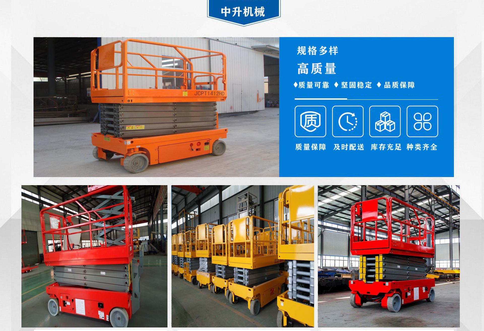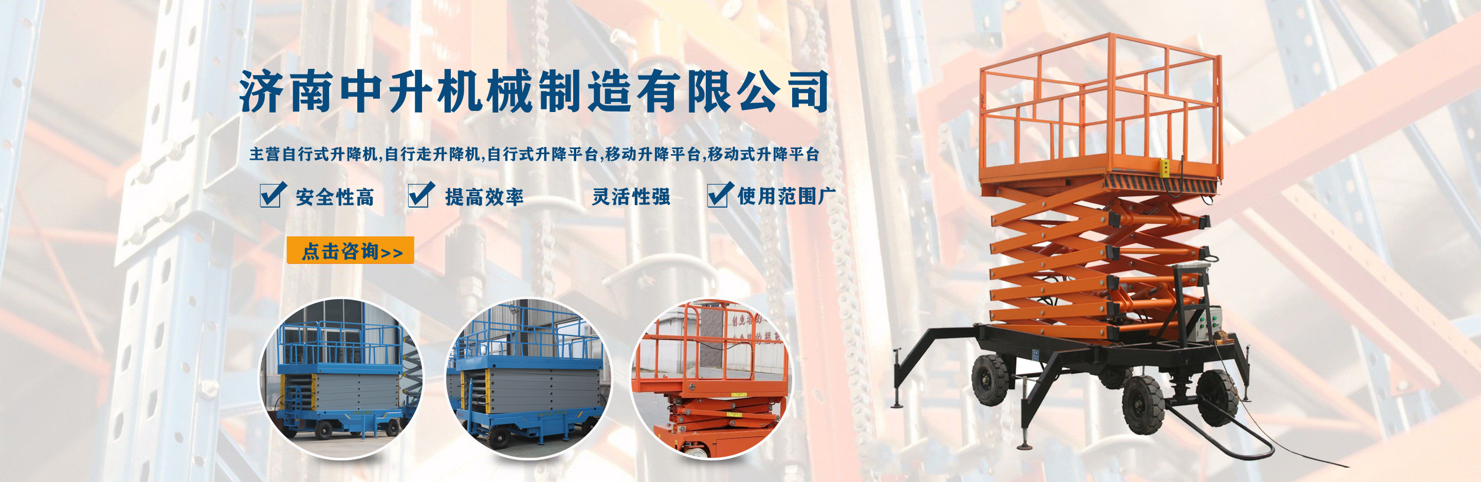 濟南中升機械制造有限公司主營自行式升降機,自行走升降機,自行式升降平臺,移動升降平臺,移動式升降平臺等產(chǎn)品,產(chǎn)品廣泛用于廠房維護、工業(yè)安裝、設(shè)備檢修、物業(yè)管理、倉庫、航空、機場、港口、車站、加油站、體育場、展覽館等多種行業(yè)和場所, 公司設(shè)備精良、工藝合理、檢測手段齊全,技術(shù)力量充足,公司創(chuàng)立伊始即本著“專注、專心”的經(jīng)營理念,依托技術(shù)團隊優(yōu)勢和設(shè)備硬件保障,全力打造良心的升降平臺企業(yè)?! ∥夜臼冀K以“品質(zhì)為本,服務(wù)至上”作為企業(yè)宗旨。只要你訂購了我公司的產(chǎn)品,無論你身處何方,我們都會及時派出技術(shù)人員為你服務(wù)!...